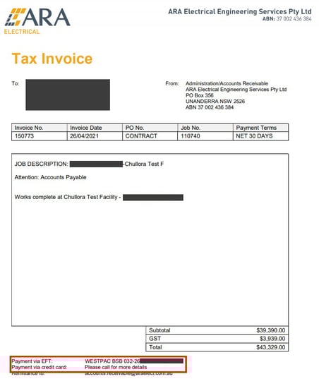In Abbildung 2 ist die Original-Rechnung abgebildet und in Rot umrandet die Kontoangaben einer australischen Bank.