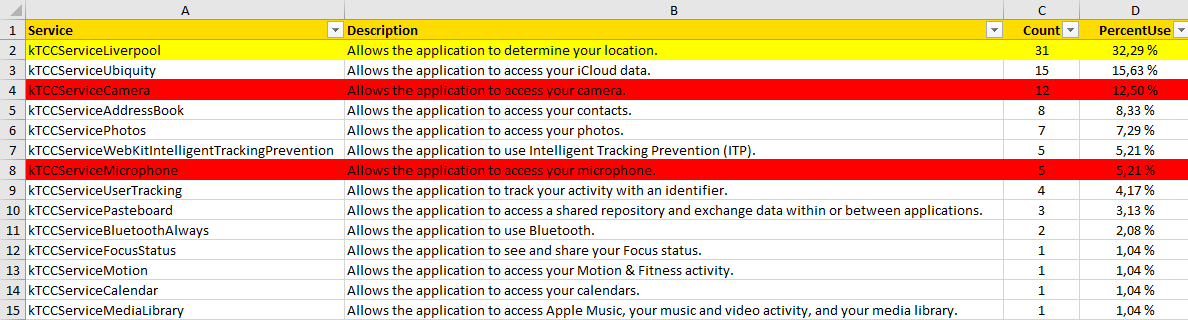Figure 5: Analysis of the application authorisations (here: TCC database on iOS) with the toolset